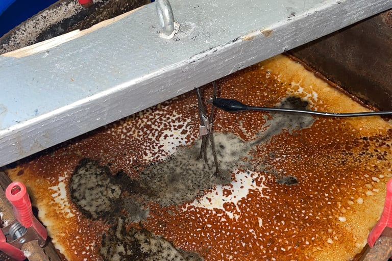 The Science of Restoration: The Electrolysis Bath To handle the heavy rust on the treadle stand without damaging the original metal, I used an electrolysis bath. This process uses an electrical current to pull the rust off the iron, leaving a clean surface ready for refinishing. It’s a slow, careful process, but for a machine with this much sentimental value, it’s the only way to do it right.